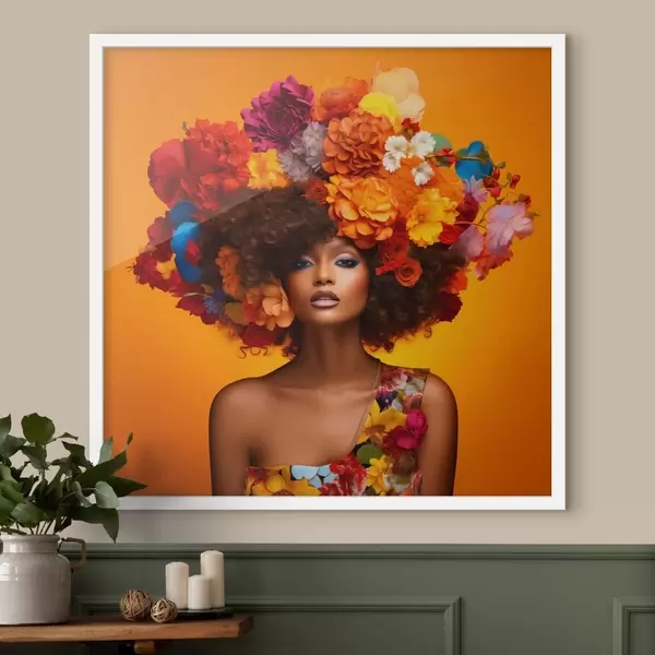 Poster Frau mit Blumenkranz auf orangefarbenem Hintergrund f48102