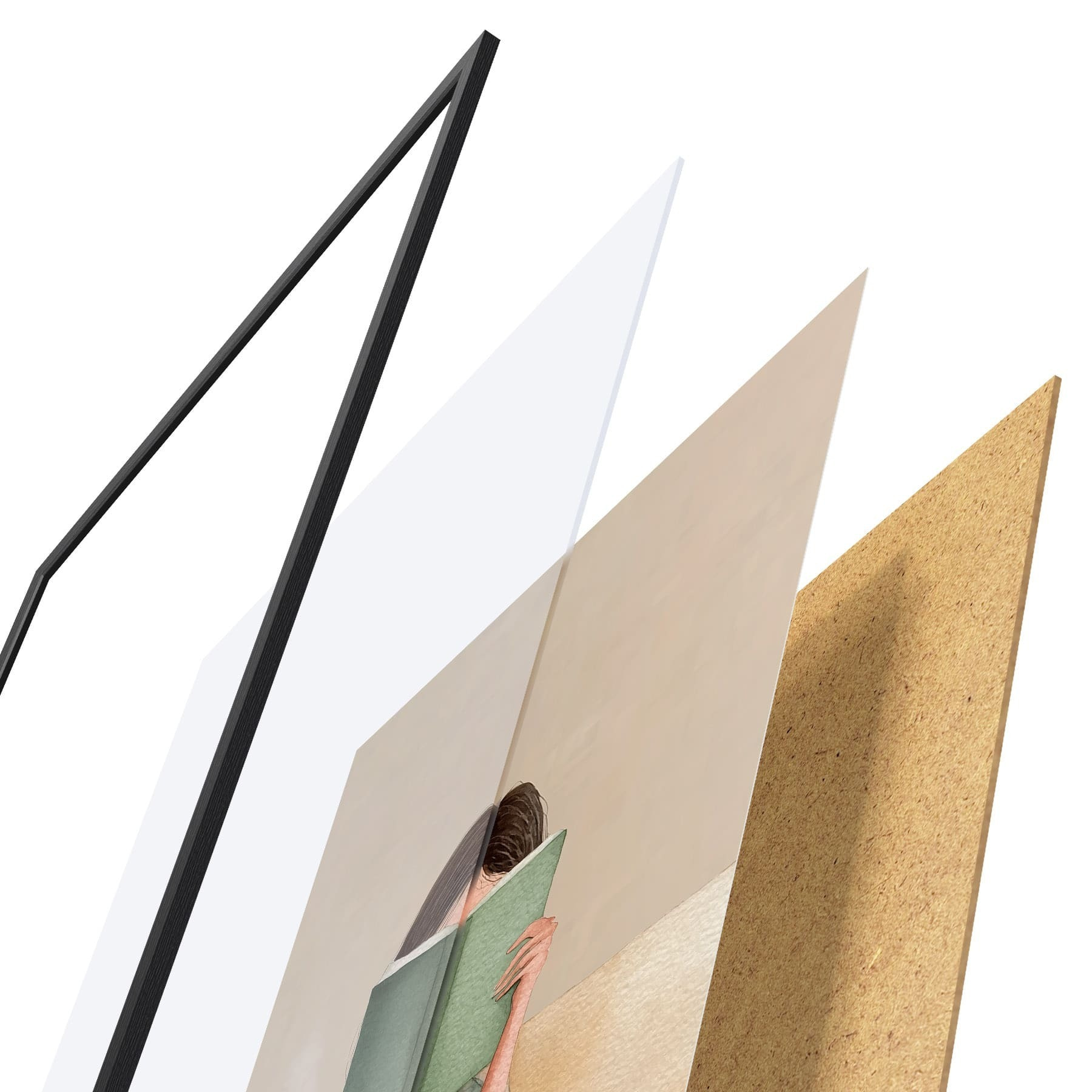 Das Poster besteht aus einem Rahmen, Plexiglas, einem gedruckten Bild und einer Rückwand aus Spanplatten. Dank der Halterungen auf der Rückseite kann das Poster sofort an die Wand gehängt werden.