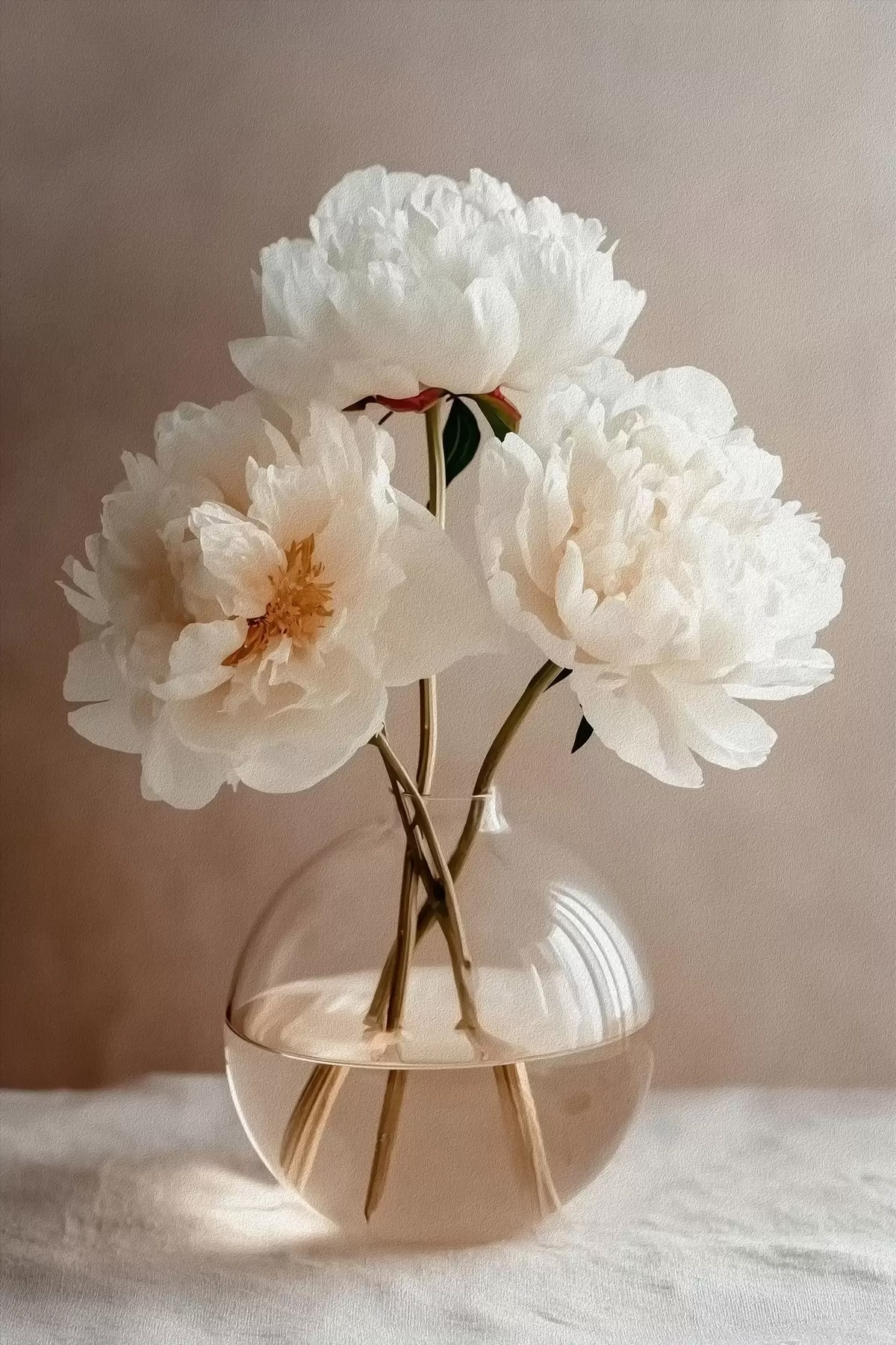 Poster Luftiges, minimalistisches Stillleben mit Pfingstrosen Nr f48119