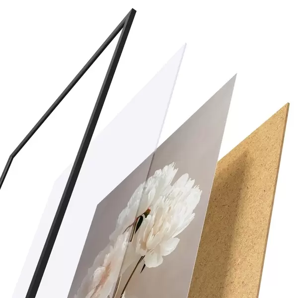 Das Poster besteht aus einem Rahmen, Plexiglas, einem gedruckten Bild und einer Rückwand aus Spanplatten. Dank der Halterungen auf der Rückseite kann das Poster sofort an die Wand gehängt werden.