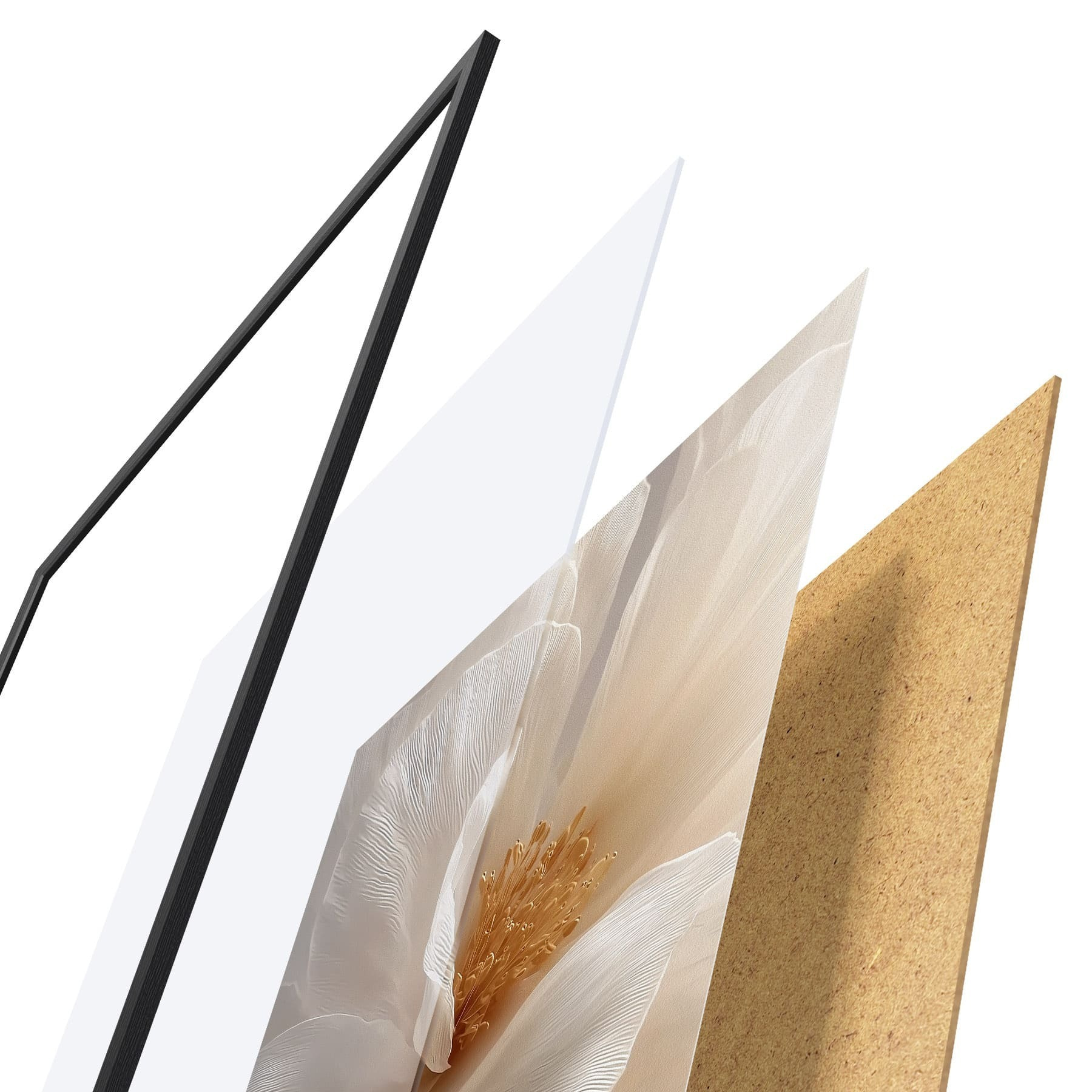 Das Poster besteht aus einem Rahmen, Plexiglas, einem gedruckten Bild und einer Rückwand aus Spanplatten. Dank der Halterungen auf der Rückseite kann das Poster sofort an die Wand gehängt werden.
