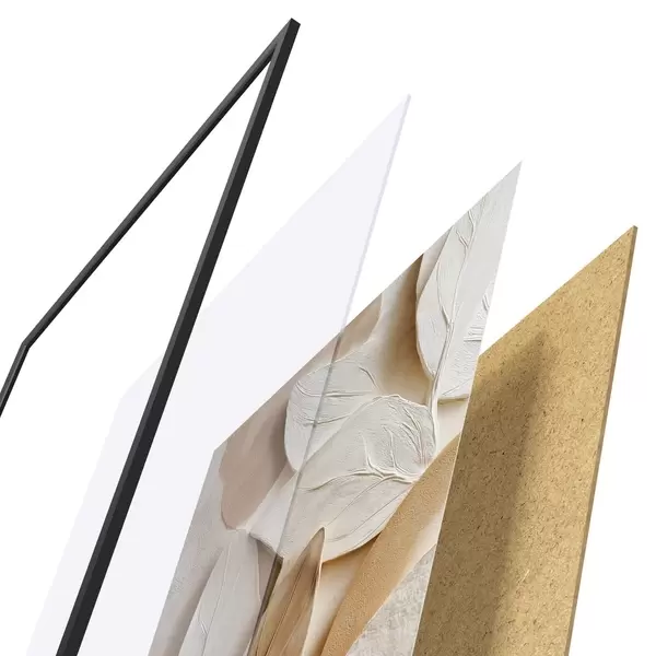 Das Poster besteht aus einem Rahmen, Plexiglas, einem gedruckten Bild und einer Rückwand aus Spanplatten. Dank der Halterungen auf der Rückseite kann das Poster sofort an die Wand gehängt werden.