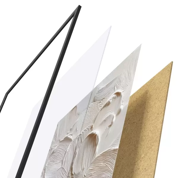 Das Poster besteht aus einem Rahmen, Plexiglas, einem gedruckten Bild und einer Rückwand aus Spanplatten. Dank der Halterungen auf der Rückseite kann das Poster sofort an die Wand gehängt werden.