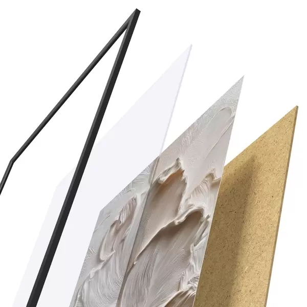 Das Poster besteht aus einem Rahmen, Plexiglas, einem gedruckten Bild und einer Rückwand aus Spanplatten. Dank der Halterungen auf der Rückseite kann das Poster sofort an die Wand gehängt werden.