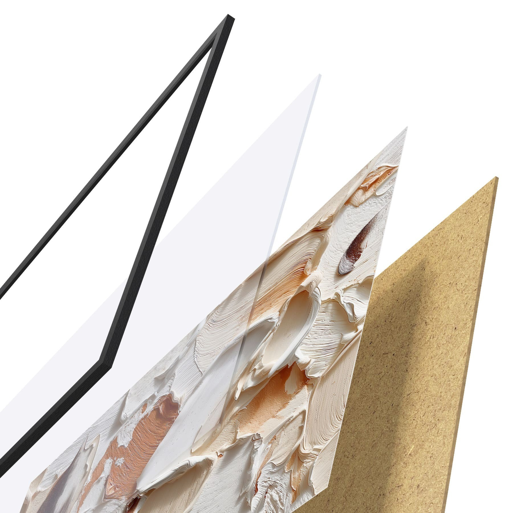 Das Poster besteht aus einem Rahmen, Plexiglas, einem gedruckten Bild und einer Rückwand aus Spanplatten. Dank der Halterungen auf der Rückseite kann das Poster sofort an die Wand gehängt werden.