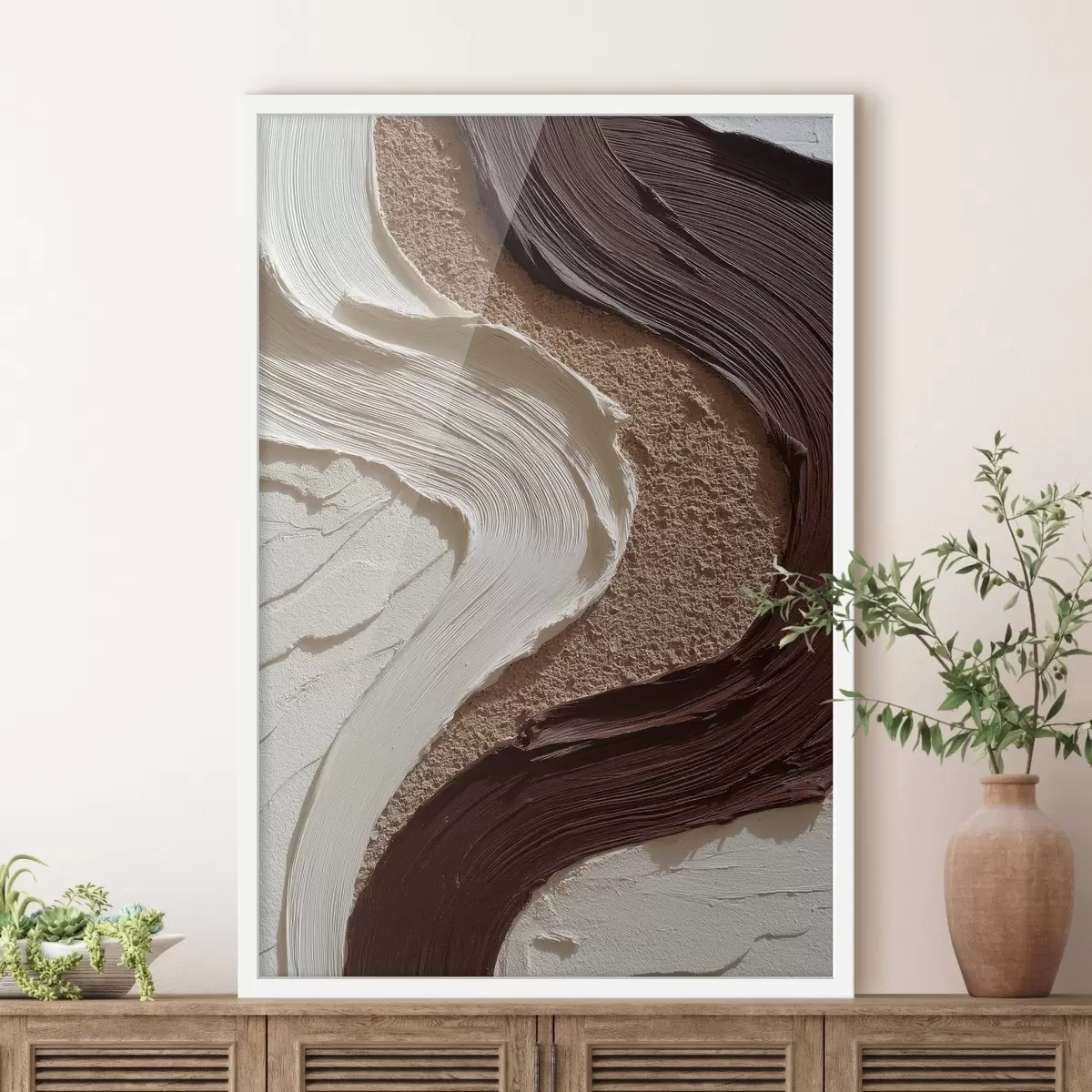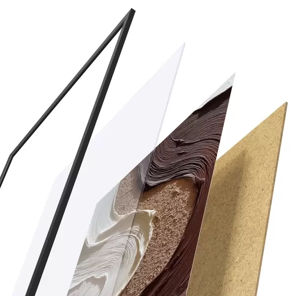Das Poster besteht aus einem Rahmen, Plexiglas, einem gedruckten Bild und einer Rückwand aus Spanplatten. Dank der Halterungen auf der Rückseite kann das Poster sofort an die Wand gehängt werden.
