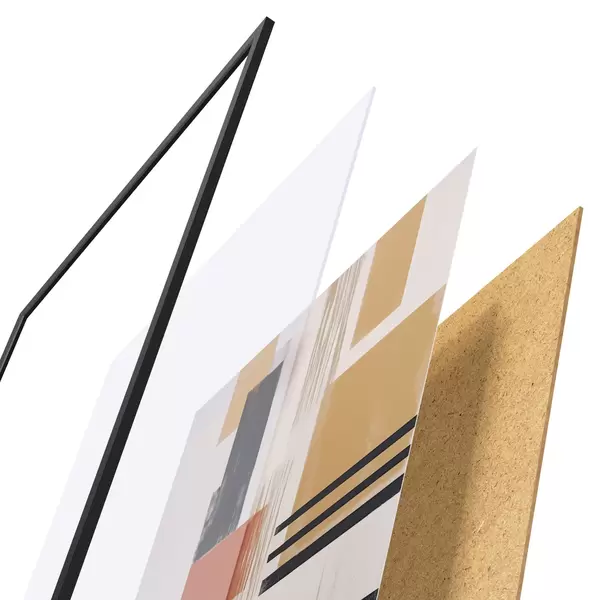 Das Poster besteht aus einem Rahmen, Plexiglas, einem gedruckten Bild und einer Rückwand aus Spanplatten. Dank der Halterungen auf der Rückseite kann das Poster sofort an die Wand gehängt werden.