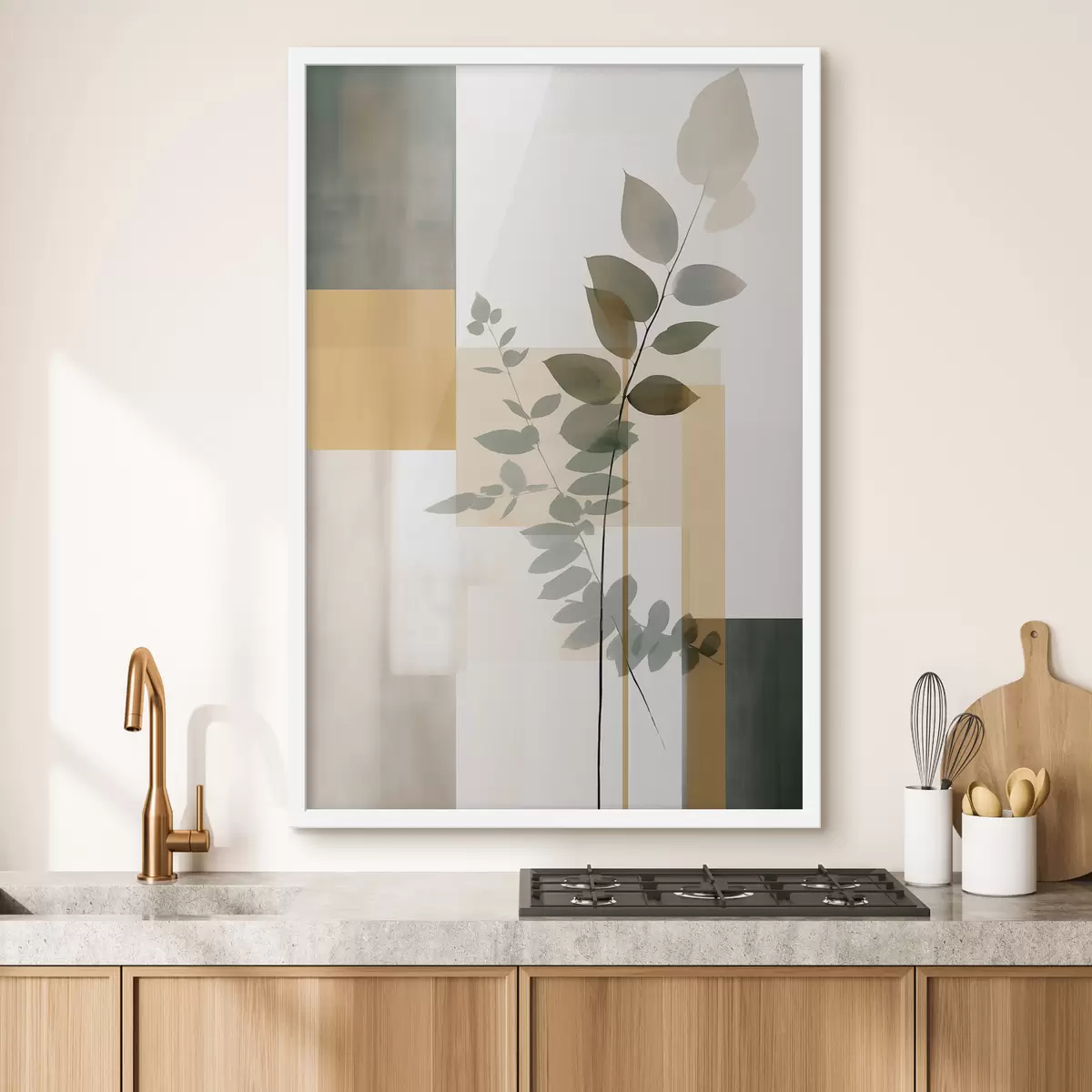 Poster Geometrische Abstraktion mit Zweigen und Blättern Nr f48171