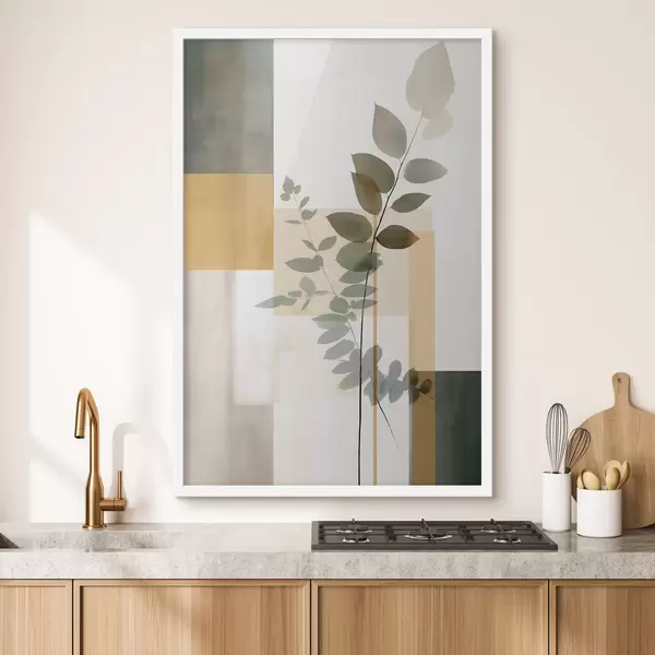 Poster Geometrische Abstraktion mit Zweigen und Blättern f48171