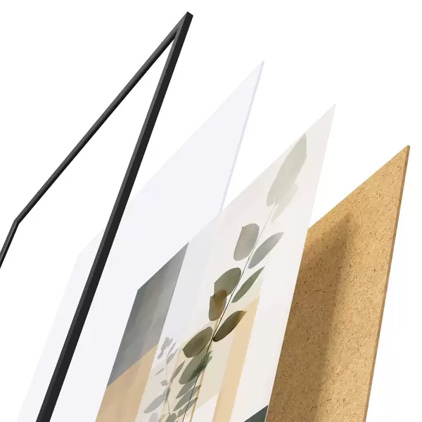 Das Poster besteht aus einem Rahmen, Plexiglas, einem gedruckten Bild und einer Rückwand aus Spanplatten. Dank der Halterungen auf der Rückseite kann das Poster sofort an die Wand gehängt werden.