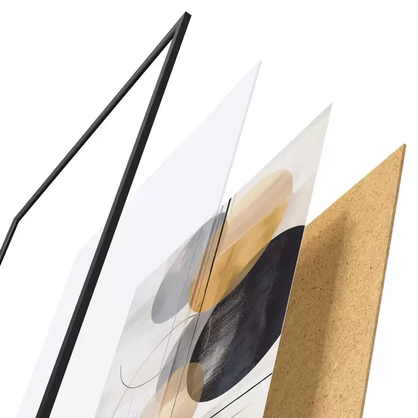 Das Poster besteht aus einem Rahmen, Plexiglas, einem gedruckten Bild und einer Rückwand aus Spanplatten. Dank der Halterungen auf der Rückseite kann das Poster sofort an die Wand gehängt werden.