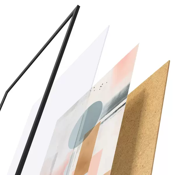 Das Poster besteht aus einem Rahmen, Plexiglas, einem gedruckten Bild und einer Rückwand aus Spanplatten. Dank der Halterungen auf der Rückseite kann das Poster sofort an die Wand gehängt werden.