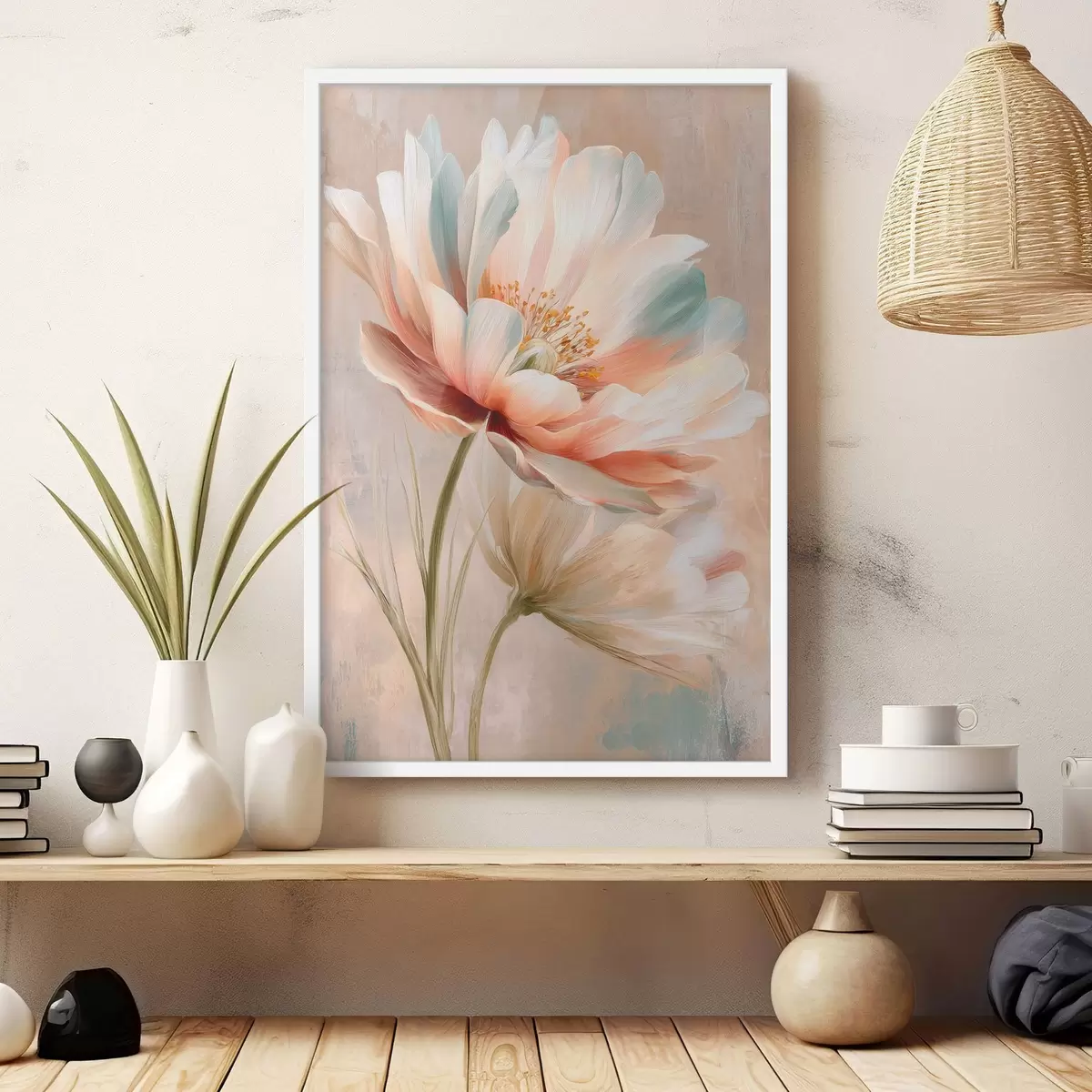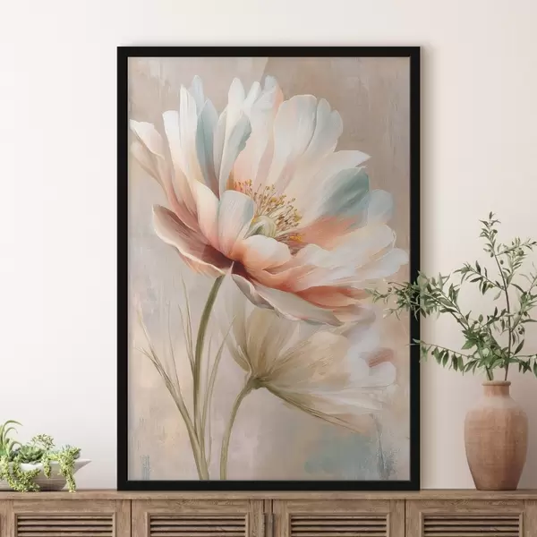 Poster Zarte Pfingstrosen in Beige- und Korallentönen im Ölgemälde-Stil Nr f48184