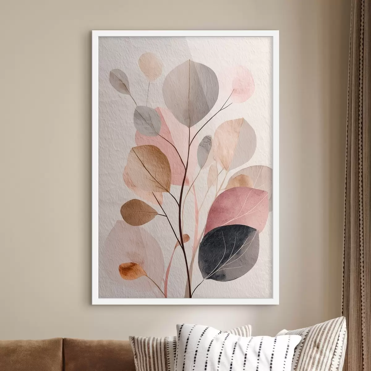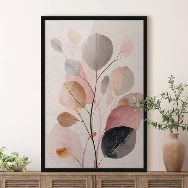 Poster Abstraktes Zweigmotiv mit runden Blättern in warmen Beige- und Korallentönen Nr f48187