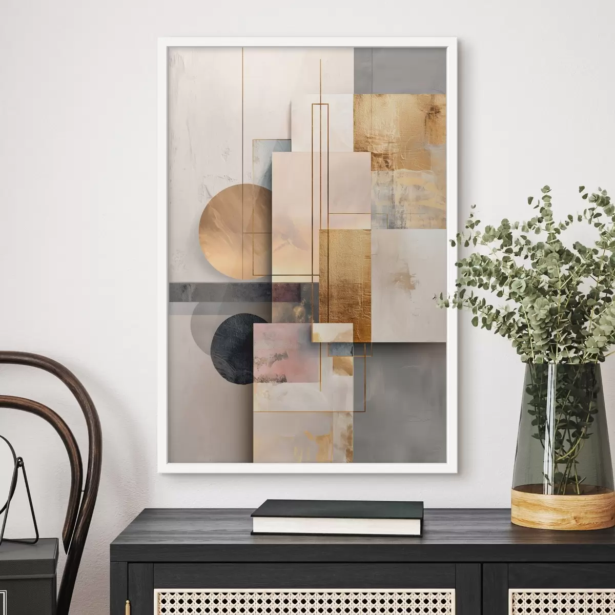 Poster Abstrakte Collage aus geometrischen Formen und strukturierten Elementen Nr f48195