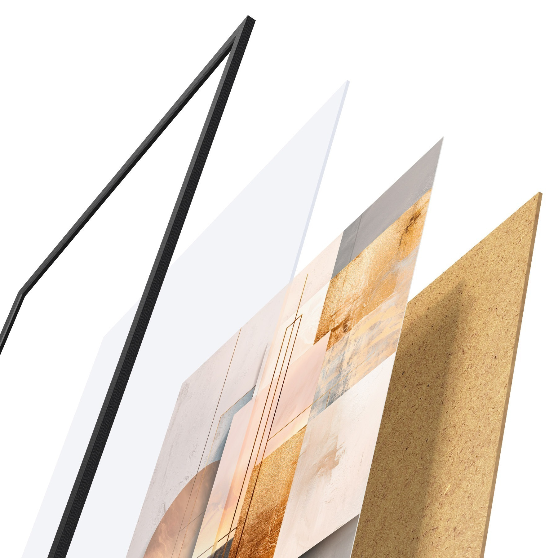 Das Poster besteht aus einem Rahmen, Plexiglas, einem gedruckten Bild und einer Rückwand aus Spanplatten. Dank der Halterungen auf der Rückseite kann das Poster sofort an die Wand gehängt werden.