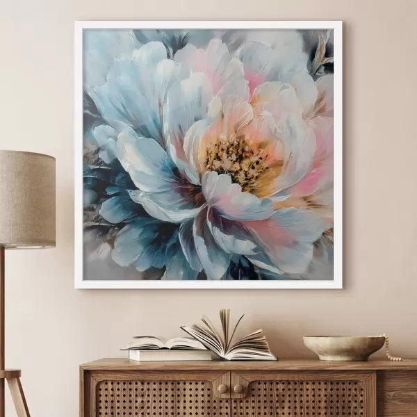 Poster Große Pfingstrose mit ausdrucksstarken, strukturierten Pinselstrichen im zeitgenössischen Malstil Nr f48197