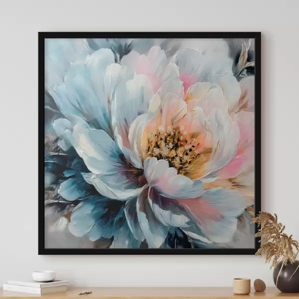 Poster Große Pfingstrose mit ausdrucksstarken, strukturierten Pinselstrichen im zeitgenössischen Malstil f48197