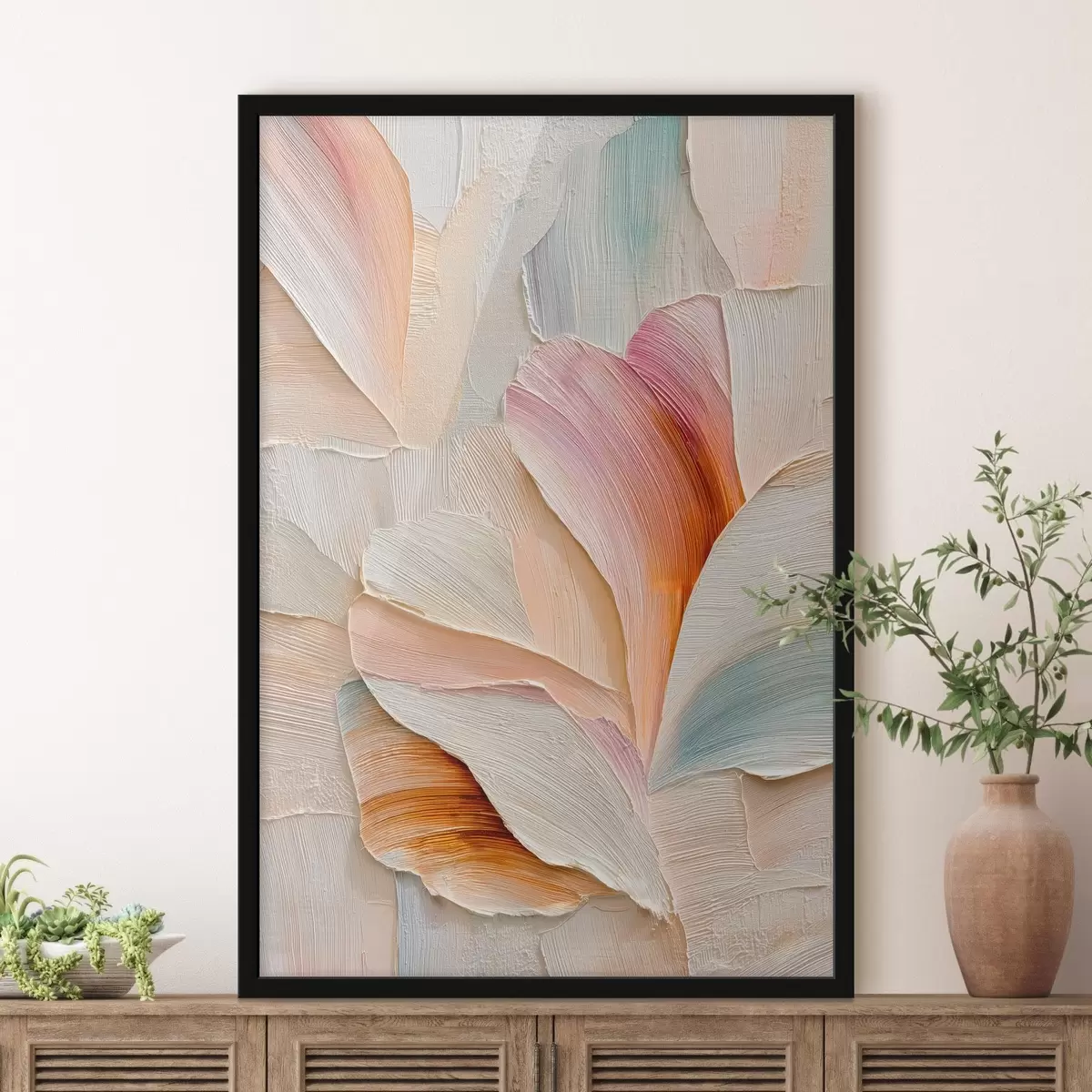 Poster Künstlerische Illustration mit plastisch wirkenden Blütenblättern im zeitgenössischen Malstil f48201