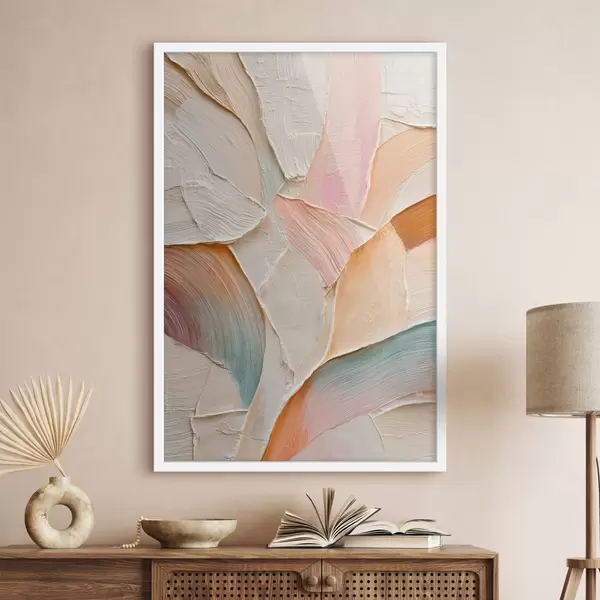 Poster Abstrakter Hintergrund mit dynamischen Pinselstrichen in Pfirsich- und Blautönen f48202
