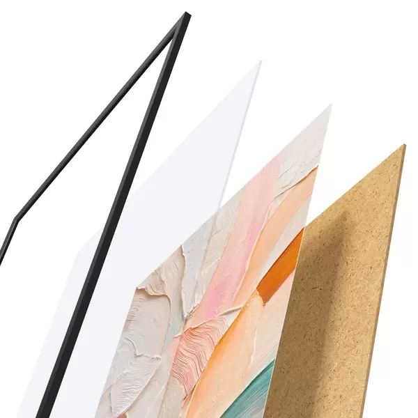 Das Poster besteht aus einem Rahmen, Plexiglas, einem gedruckten Bild und einer Rückwand aus Spanplatten. Dank der Halterungen auf der Rückseite kann das Poster sofort an die Wand gehängt werden.
