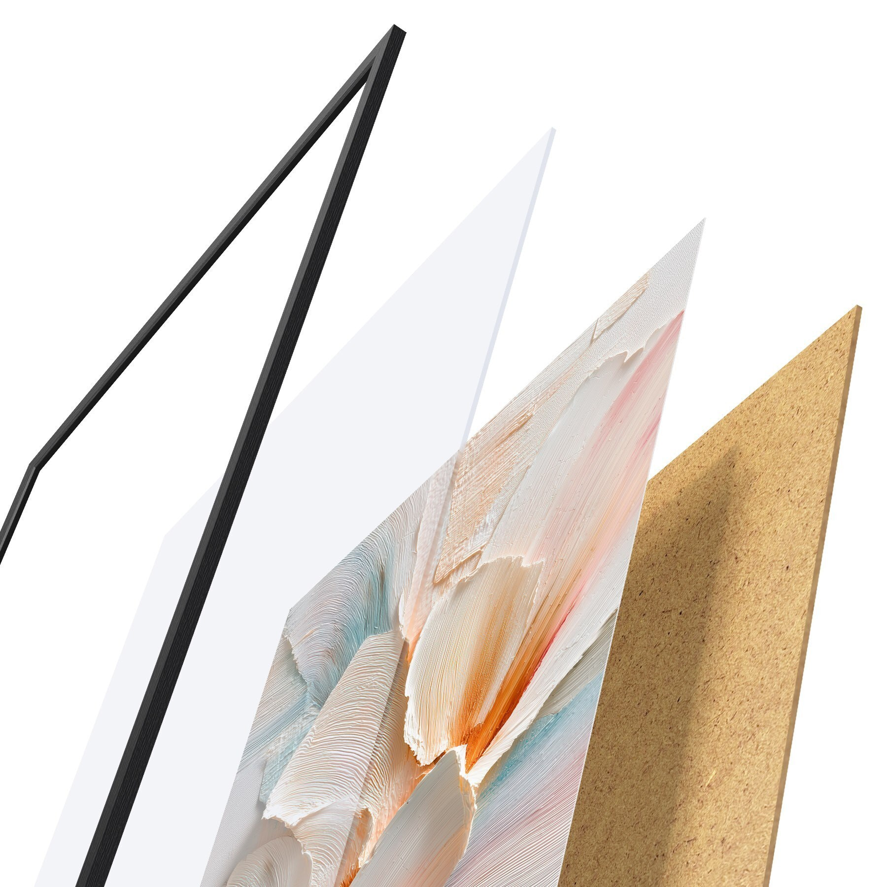 Das Poster besteht aus einem Rahmen, Plexiglas, einem gedruckten Bild und einer Rückwand aus Spanplatten. Dank der Halterungen auf der Rückseite kann das Poster sofort an die Wand gehängt werden.