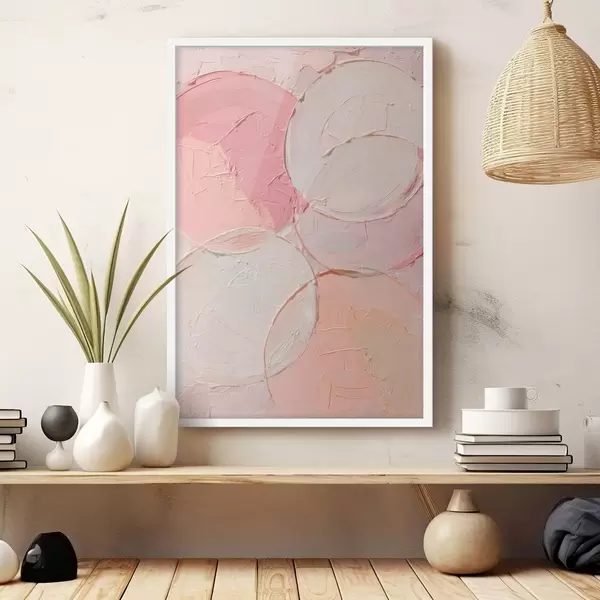 Poster Abstrakte Komposition mit Kreisen in zarten Rosatönen im Stil eines Ölgemäldes f48207