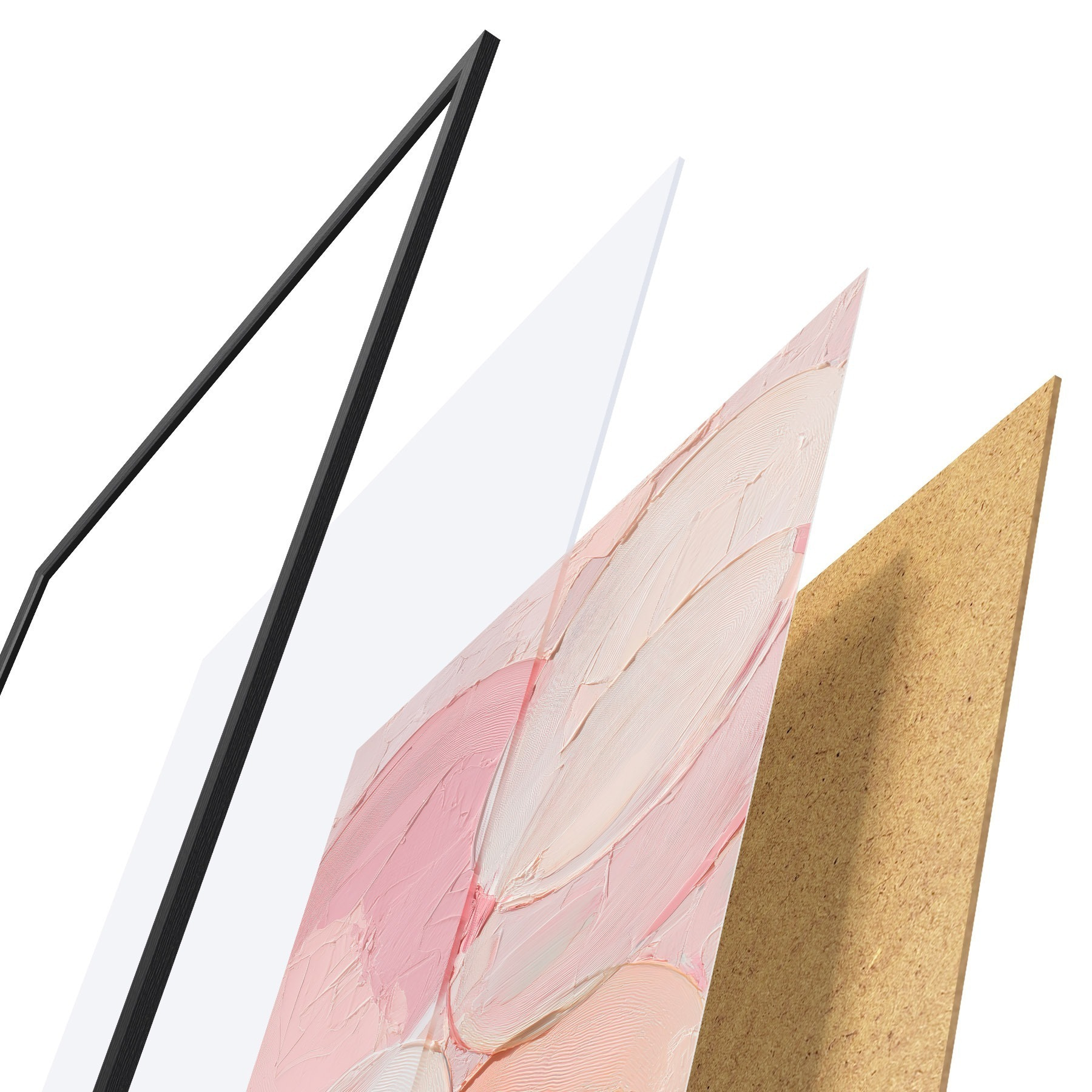 Das Poster besteht aus einem Rahmen, Plexiglas, einem gedruckten Bild und einer Rückwand aus Spanplatten. Dank der Halterungen auf der Rückseite kann das Poster sofort an die Wand gehängt werden.