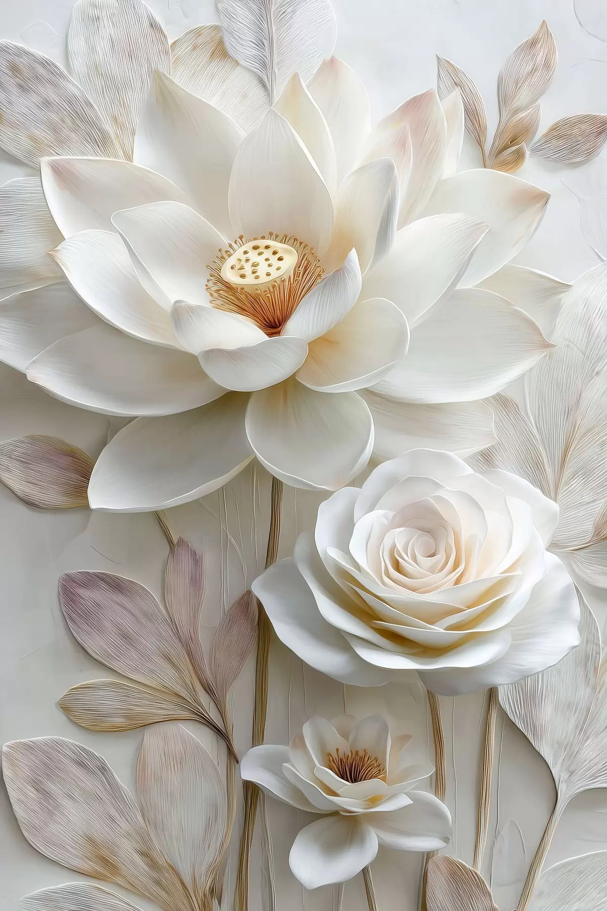Poster Lotus- und Rosenblüten in zarten Cremetönen im Ölgemälde-Stil Nr f48214