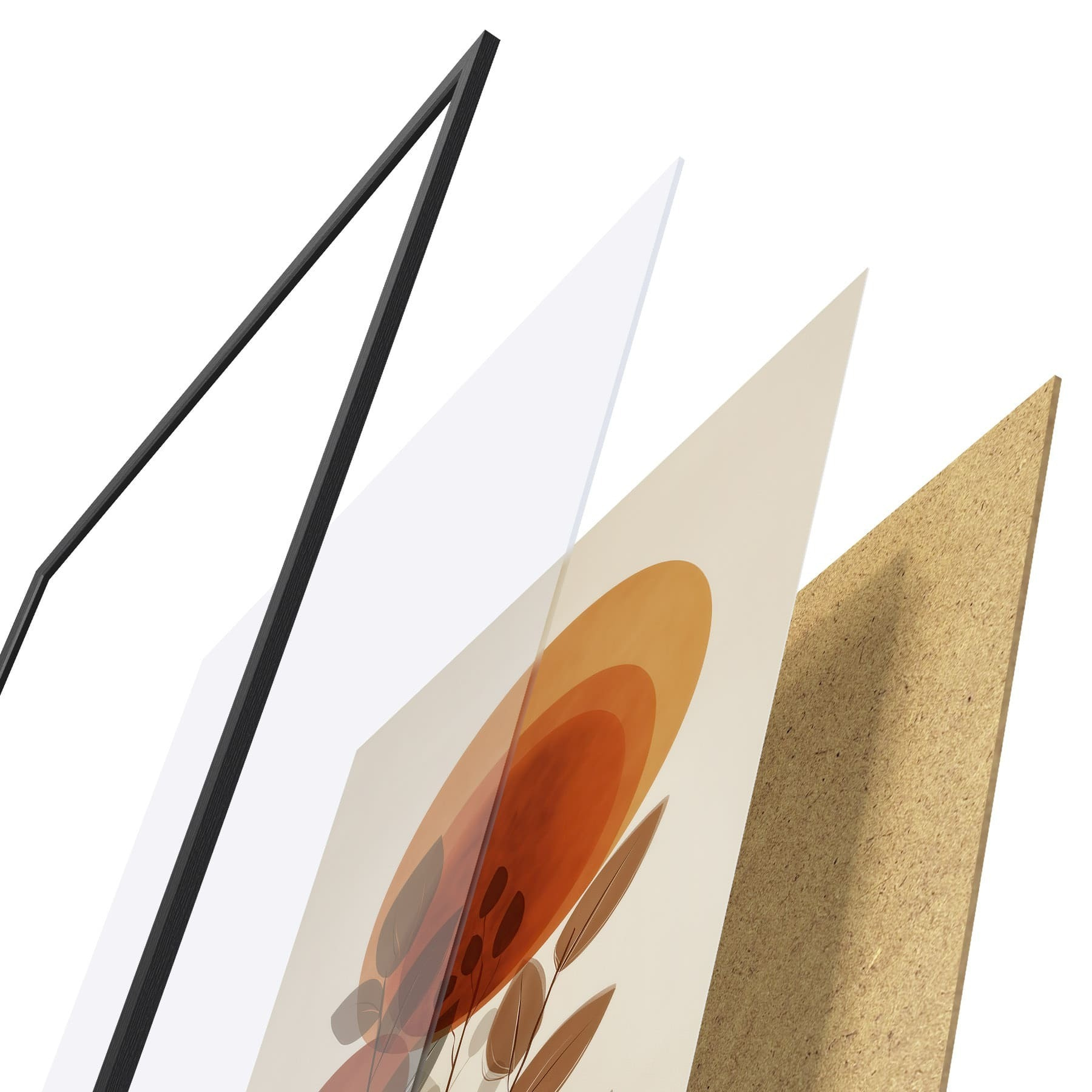 Das Poster besteht aus einem Rahmen, Plexiglas, einem gedruckten Bild und einer Rückwand aus Spanplatten. Dank der Halterungen auf der Rückseite kann das Poster sofort an die Wand gehängt werden.