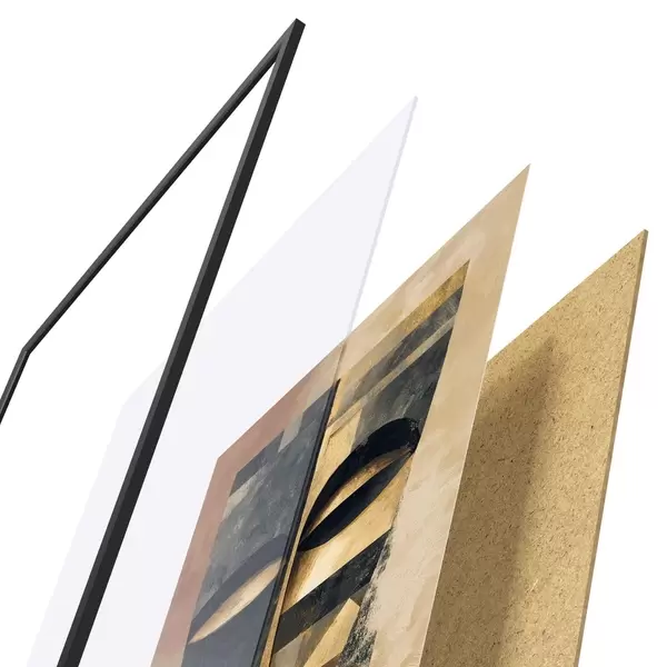 Das Poster besteht aus einem Rahmen, Plexiglas, einem gedruckten Bild und einer Rückwand aus Spanplatten. Dank der Halterungen auf der Rückseite kann das Poster sofort an die Wand gehängt werden.