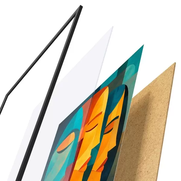 Das Poster besteht aus einem Rahmen, Plexiglas, einem gedruckten Bild und einer Rückwand aus Spanplatten. Dank der Halterungen auf der Rückseite kann das Poster sofort an die Wand gehängt werden.