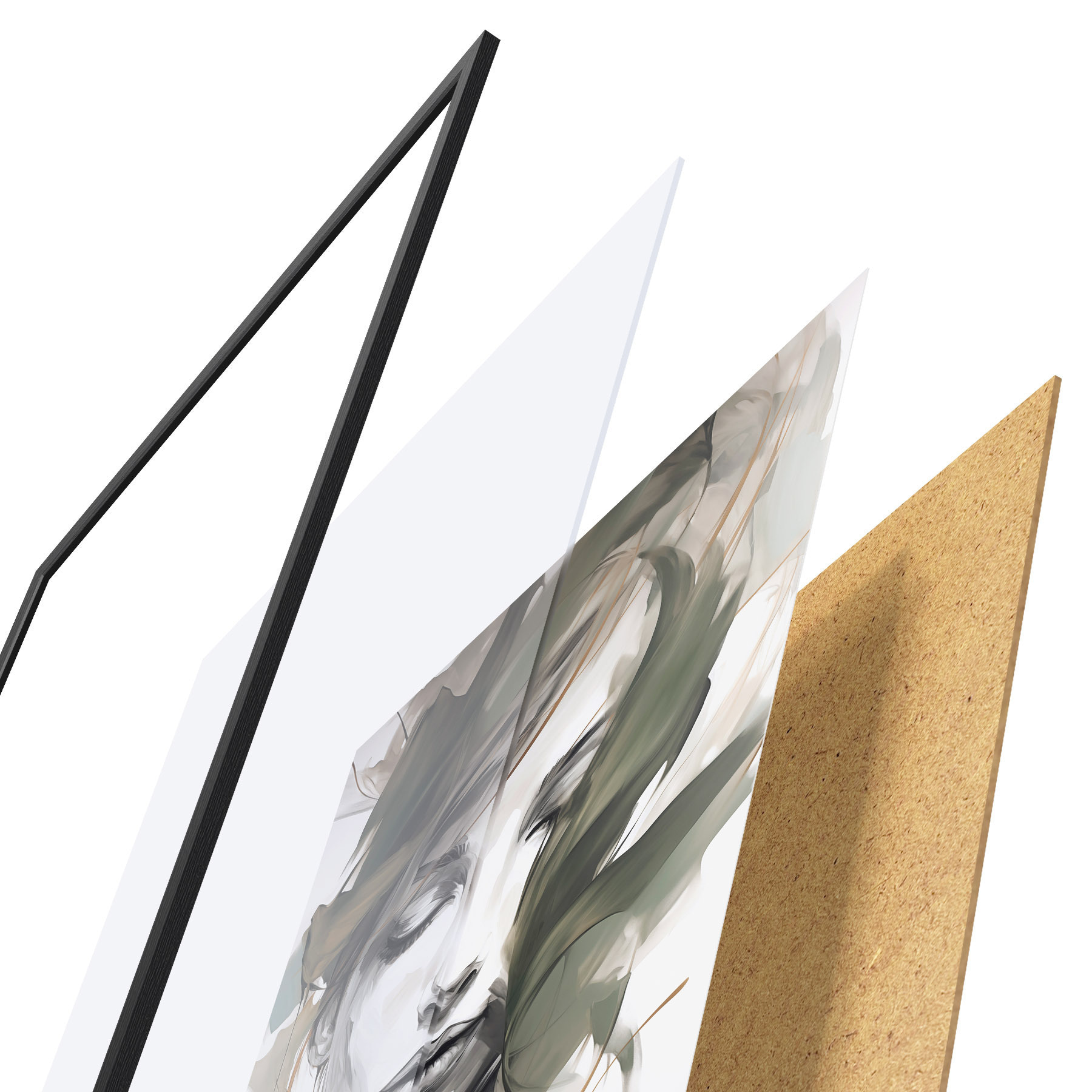 Das Poster besteht aus einem Rahmen, Plexiglas, einem gedruckten Bild und einer Rückwand aus Spanplatten. Dank der Halterungen auf der Rückseite kann das Poster sofort an die Wand gehängt werden.