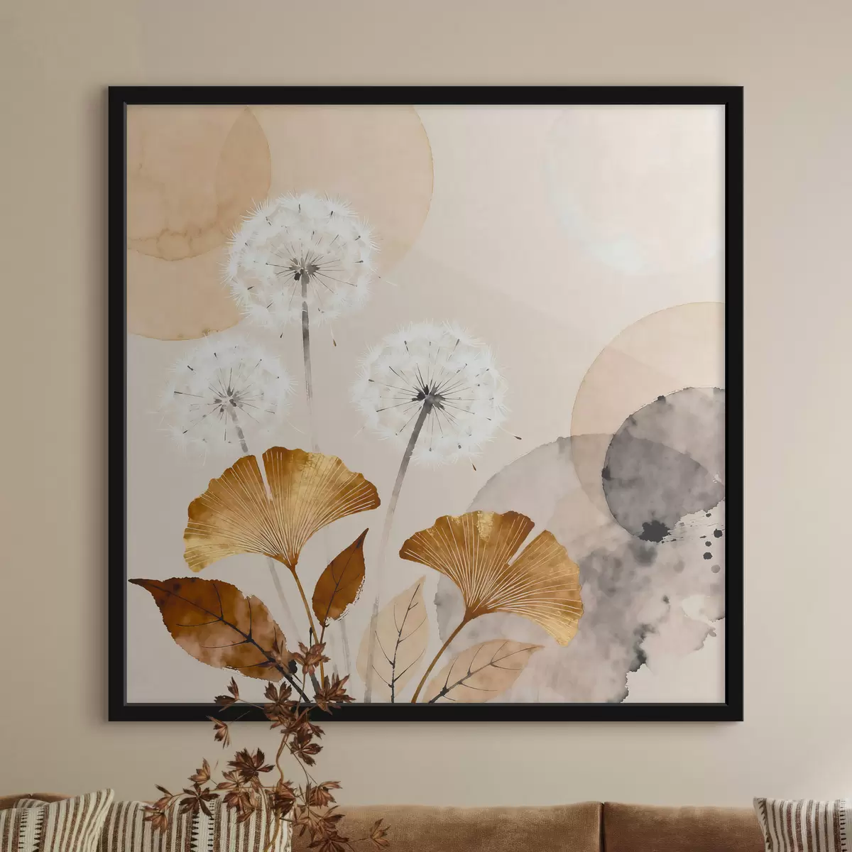 Poster Abstrakte Darstellungen von Löwenzahn und Ginkgoblättern Nr f48279