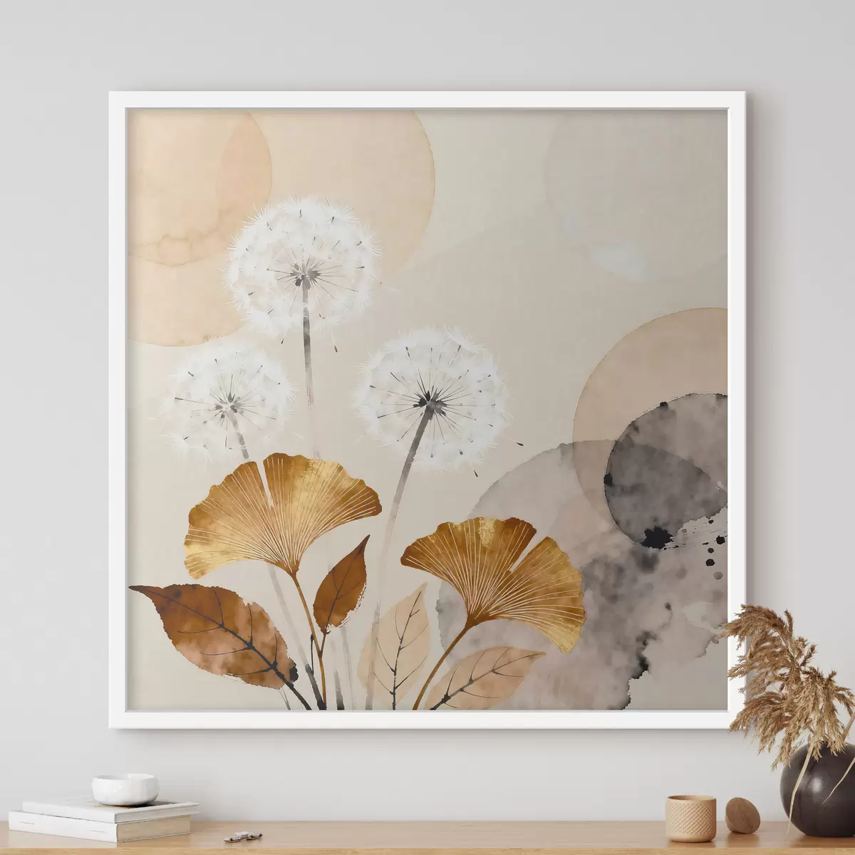 Poster Abstrakte Darstellungen von Löwenzahn und Ginkgoblättern f48279
