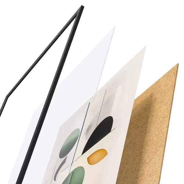 Das Poster besteht aus einem Rahmen, Plexiglas, einem gedruckten Bild und einer Rückwand aus Spanplatten. Dank der Halterungen auf der Rückseite kann das Poster sofort an die Wand gehängt werden.