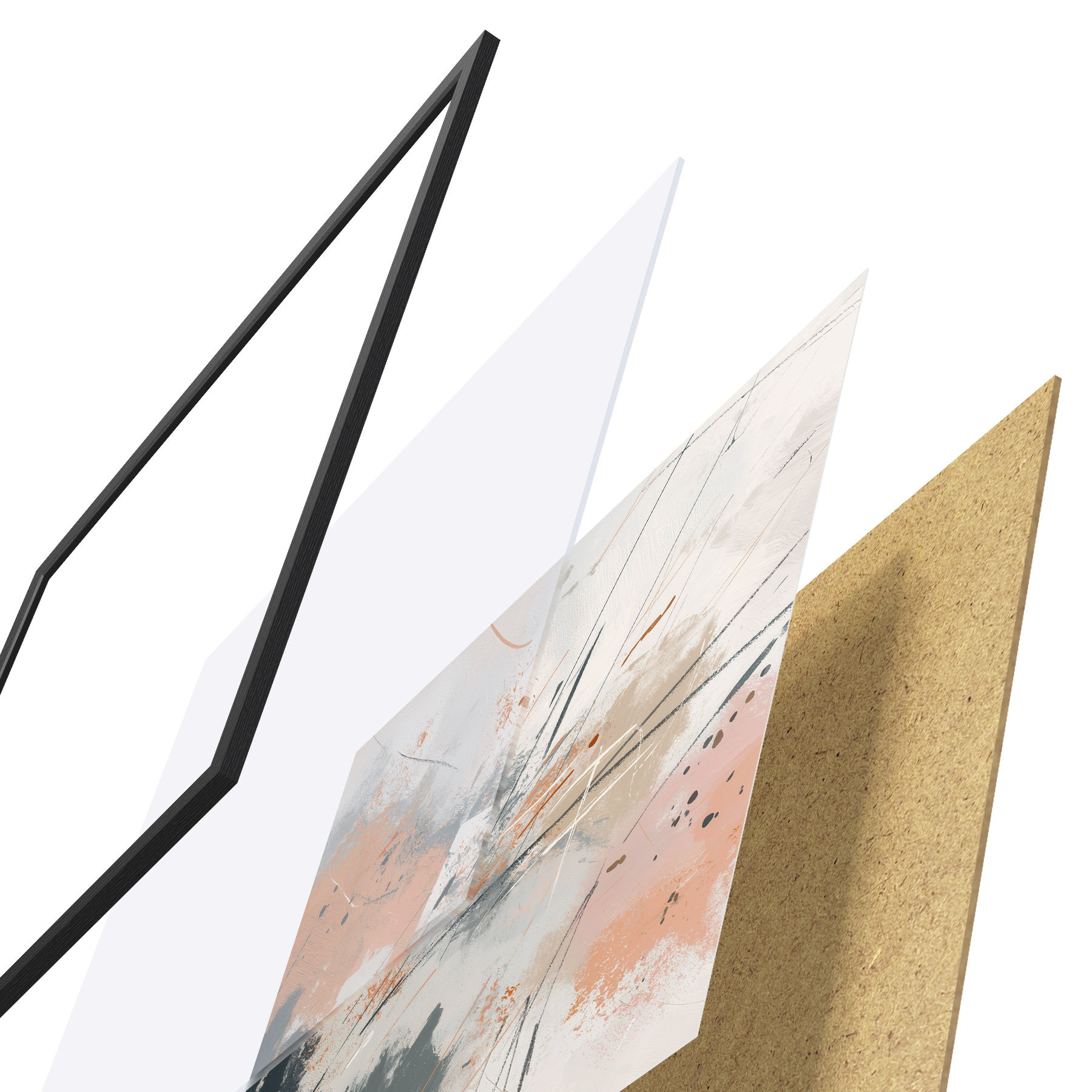 Das Poster besteht aus einem Rahmen, Plexiglas, einem gedruckten Bild und einer Rückwand aus Spanplatten. Dank der Halterungen auf der Rückseite kann das Poster sofort an die Wand gehängt werden.