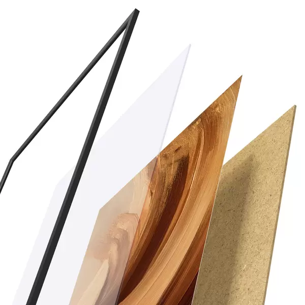 Das Poster besteht aus einem Rahmen, Plexiglas, einem gedruckten Bild und einer Rückwand aus Spanplatten. Dank der Halterungen auf der Rückseite kann das Poster sofort an die Wand gehängt werden.