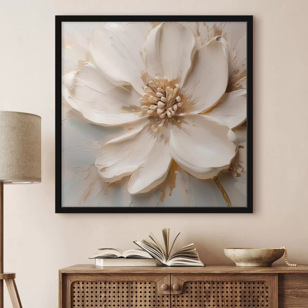 Poster Strukturierte weiße Blume in sanften Farbtönen Nr f48339