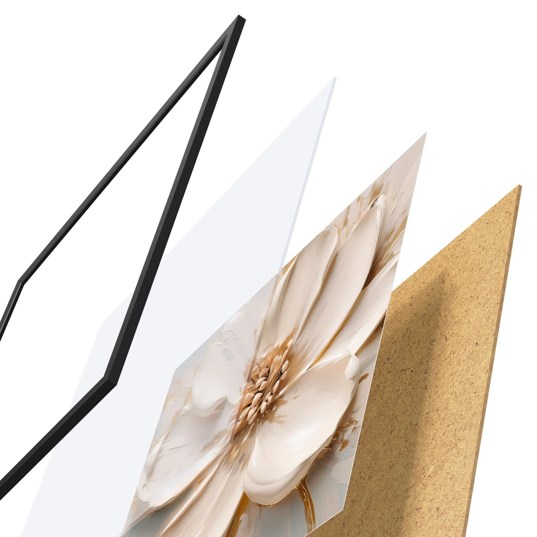Das Poster besteht aus einem Rahmen, Plexiglas, einem gedruckten Bild und einer Rückwand aus Spanplatten. Dank der Halterungen auf der Rückseite kann das Poster sofort an die Wand gehängt werden.