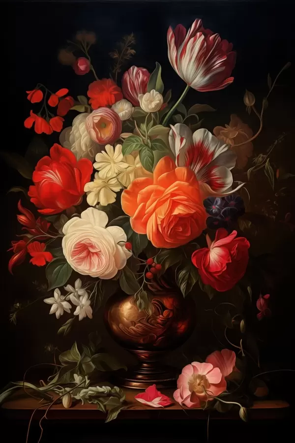 Poster Blumenstrauß in einer Vase vor dunklem Hintergrund Nr f48351