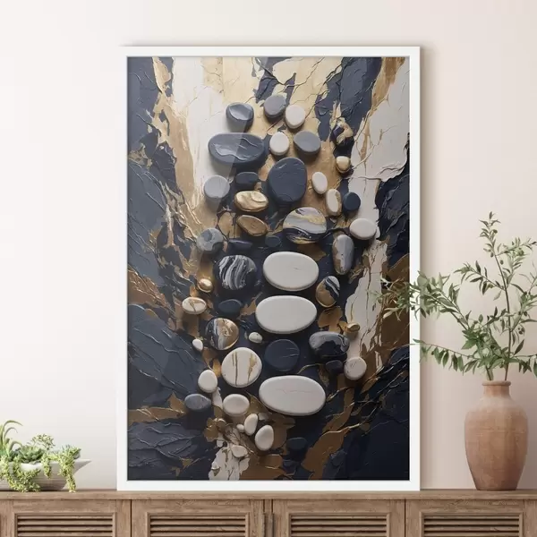 Poster Abstrakte Steinkomposition in dunkelblauen Farbtönen Nr f48357