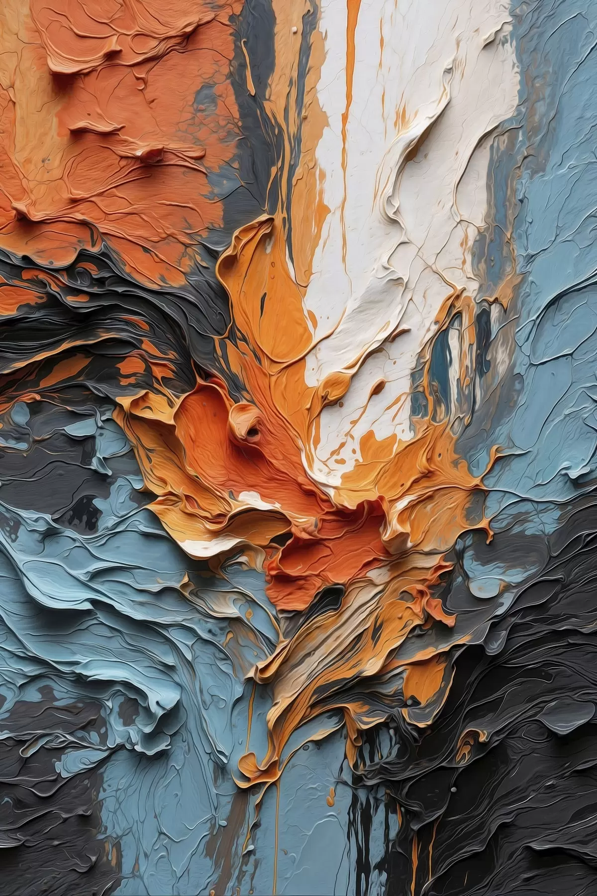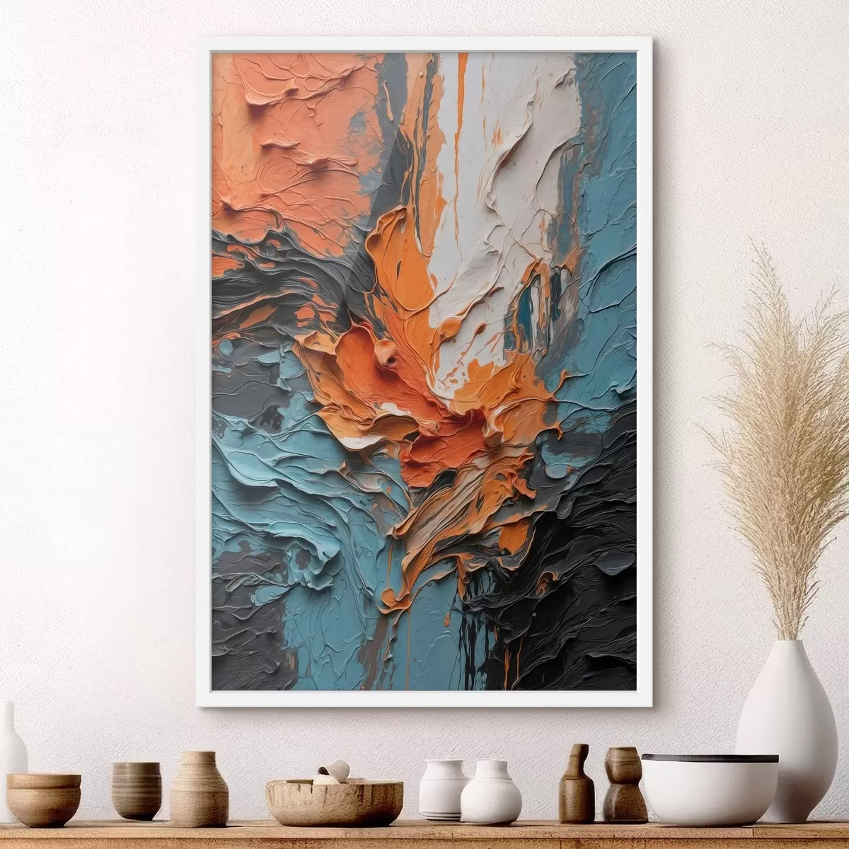Poster Leuchtende abstrakte Pinselstriche in Orange- und Blautönen Nr f48359