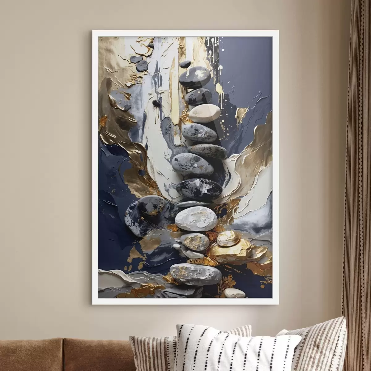 Poster Abstrakte Komposition mit Steinen und strukturierten Pinselstrichen f48362