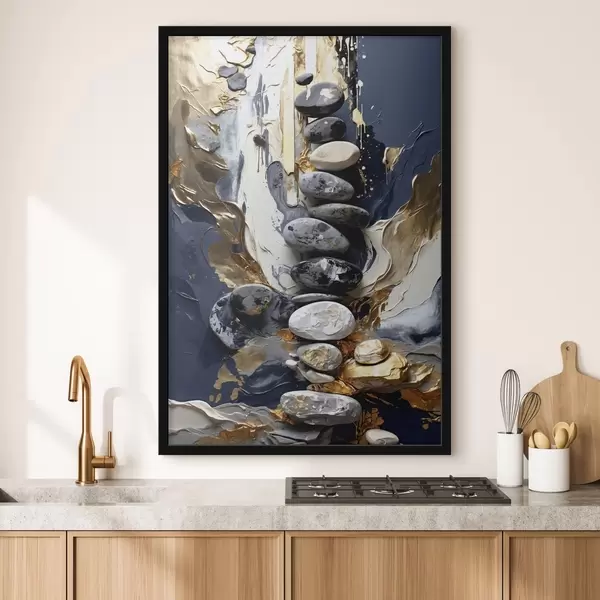 Poster Abstrakte Komposition mit Steinen und strukturierten Pinselstrichen Nr f48362