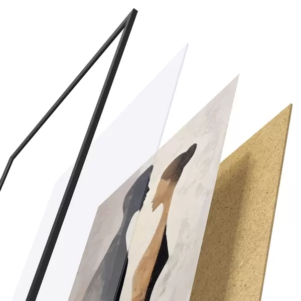 Das Poster besteht aus einem Rahmen, Plexiglas, einem gedruckten Bild und einer Rückwand aus Spanplatten. Dank der Halterungen auf der Rückseite kann das Poster sofort an die Wand gehängt werden.