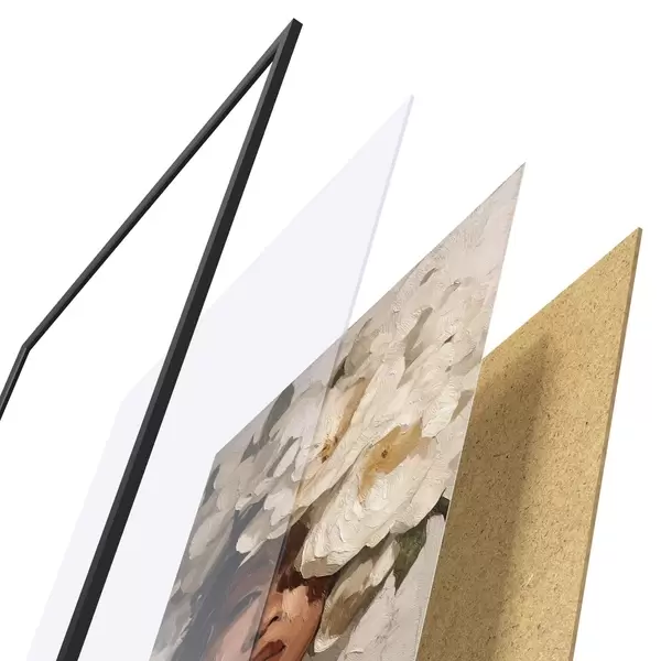 Das Poster besteht aus einem Rahmen, Plexiglas, einem gedruckten Bild und einer Rückwand aus Spanplatten. Dank der Halterungen auf der Rückseite kann das Poster sofort an die Wand gehängt werden.