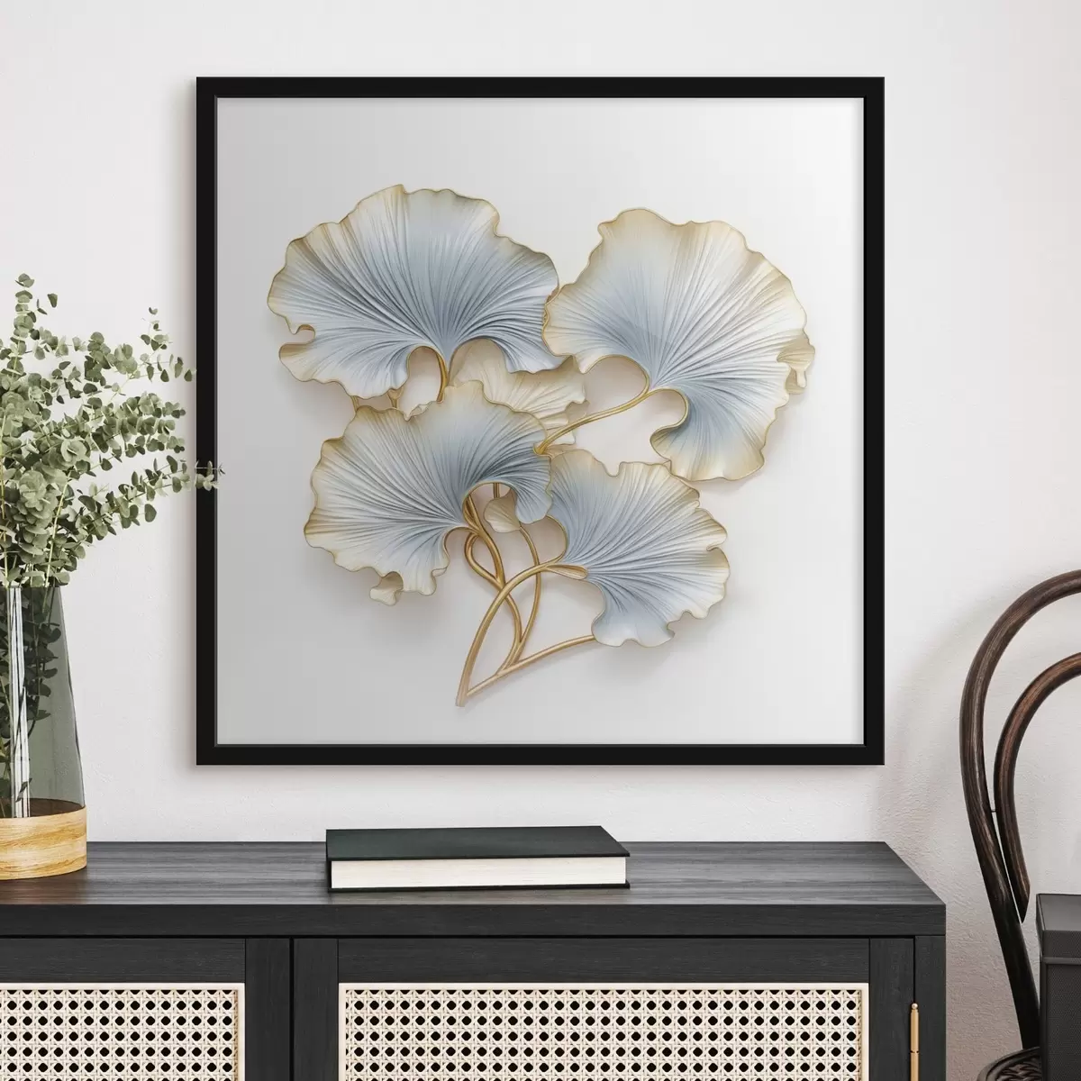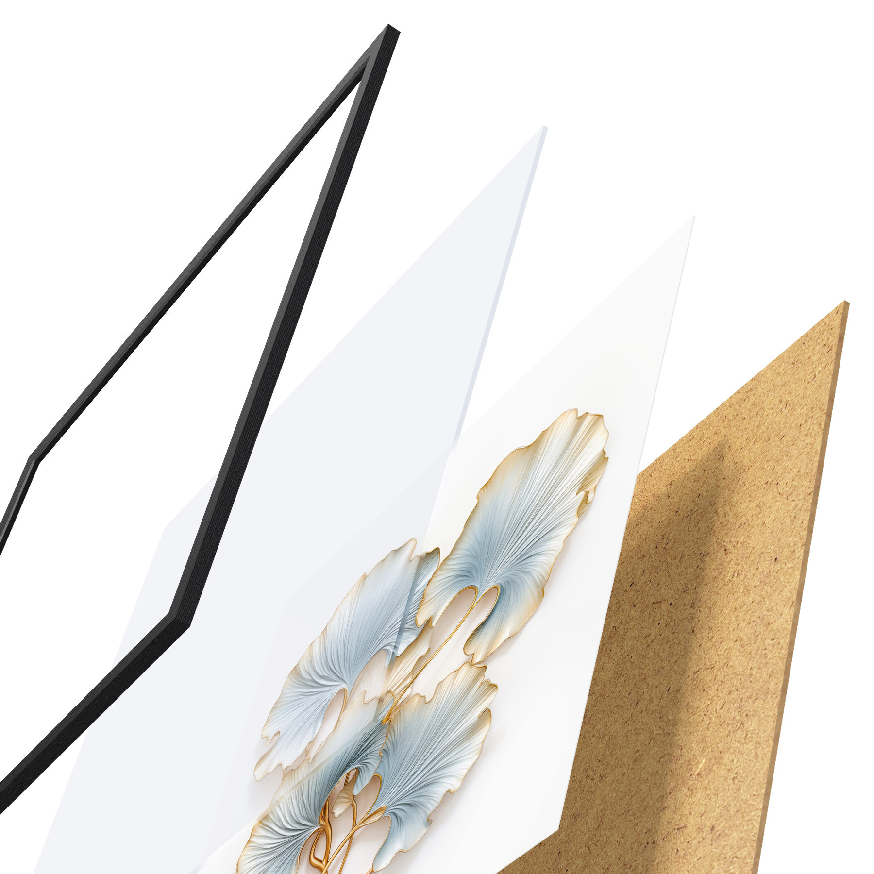 Poster Stilisierte Ginkgoblätter mit blauen und gelben Akzenten Nr f48397