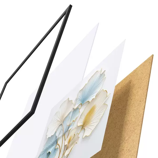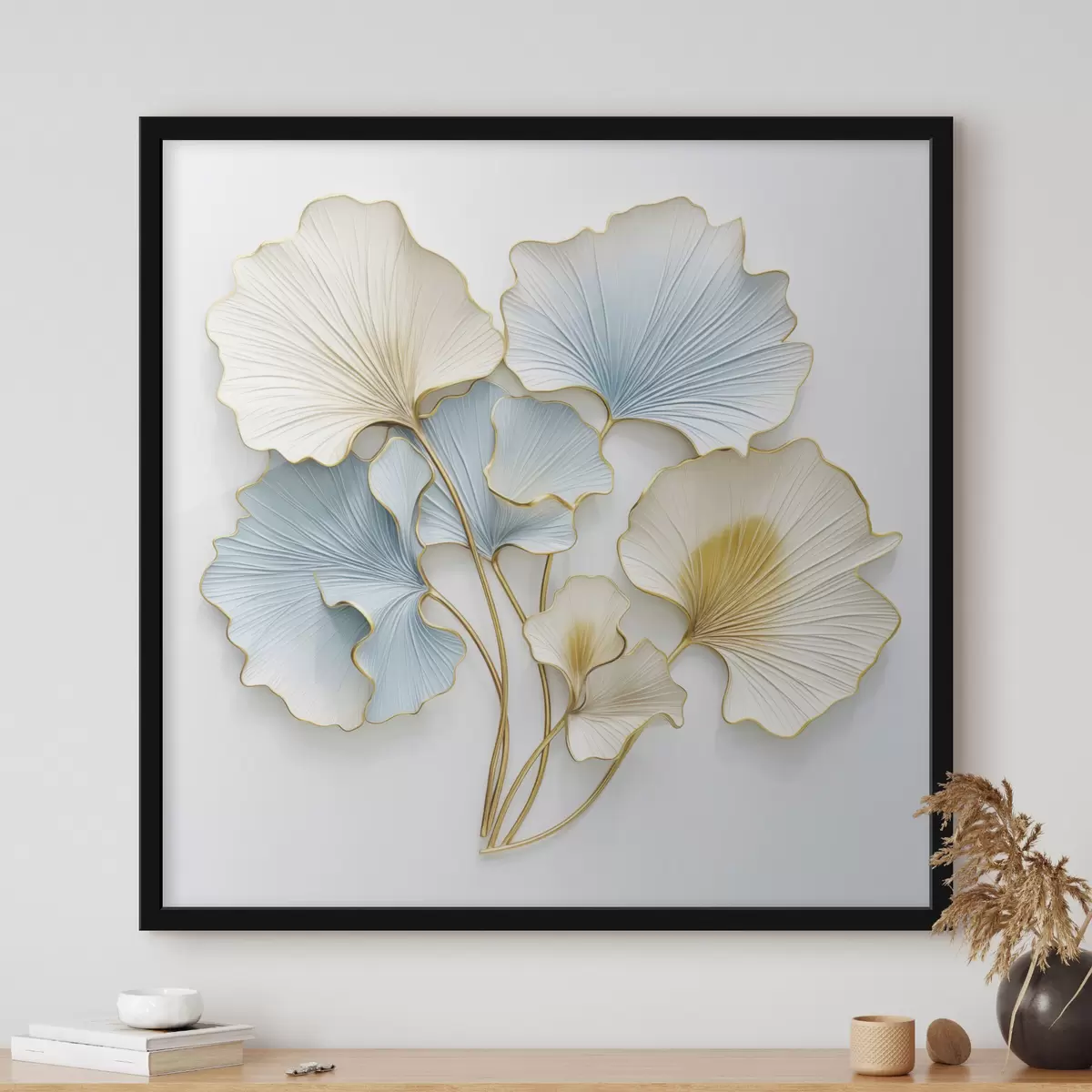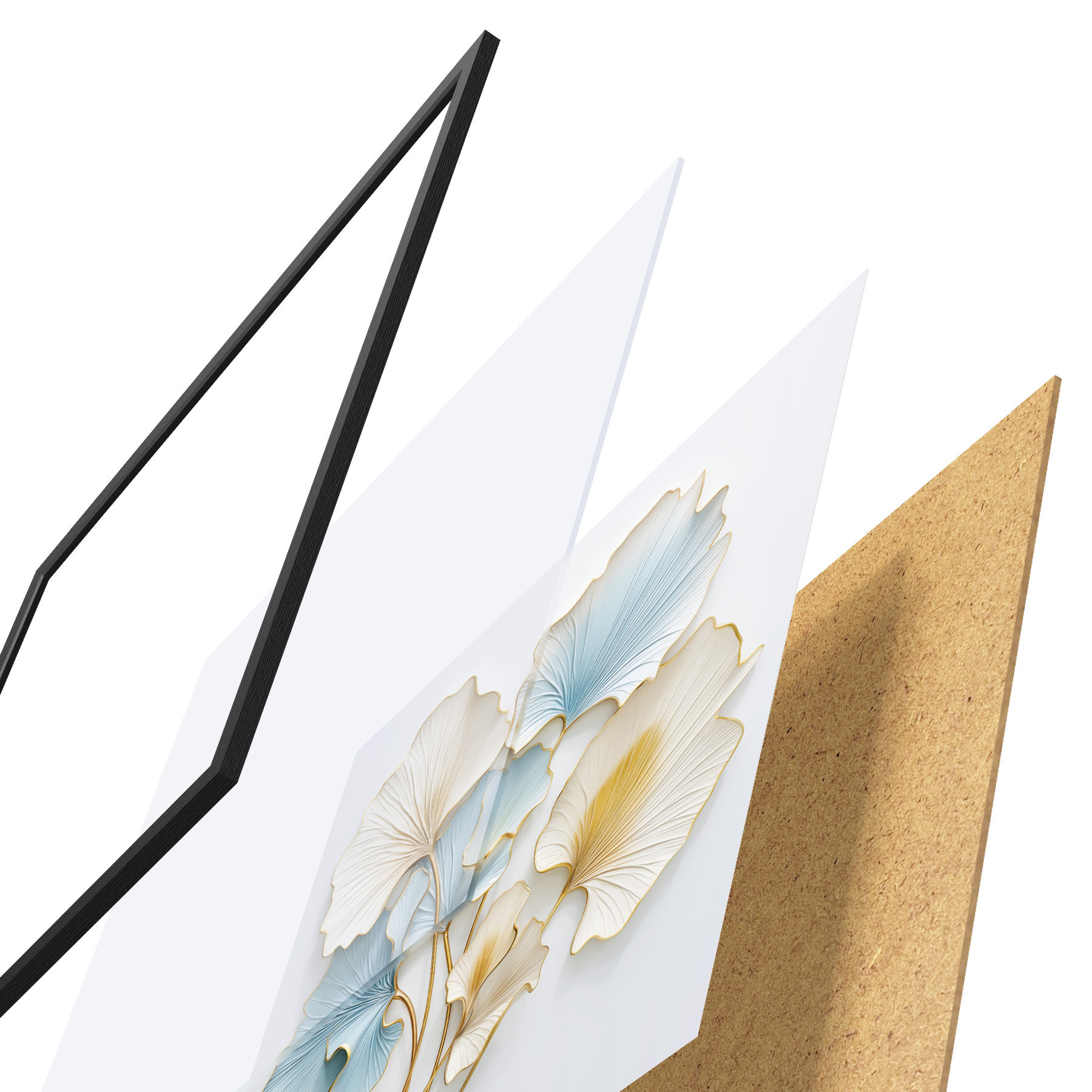 Poster Stilisierte Ginkgoblätter mit blauen und gelben Akzenten Nr f48398