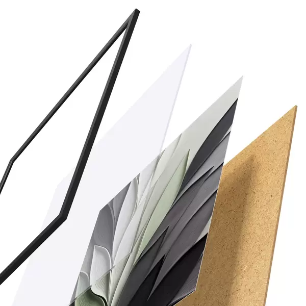 Das Poster besteht aus einem Rahmen, Plexiglas, einem gedruckten Bild und einer Rückwand aus Spanplatten. Dank der Halterungen auf der Rückseite kann das Poster sofort an die Wand gehängt werden.